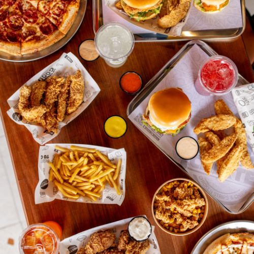 - Order your favorites — pure chicken meals, strips, or pizzas made with premium Italian flour and 100% Italian tomatoes.
